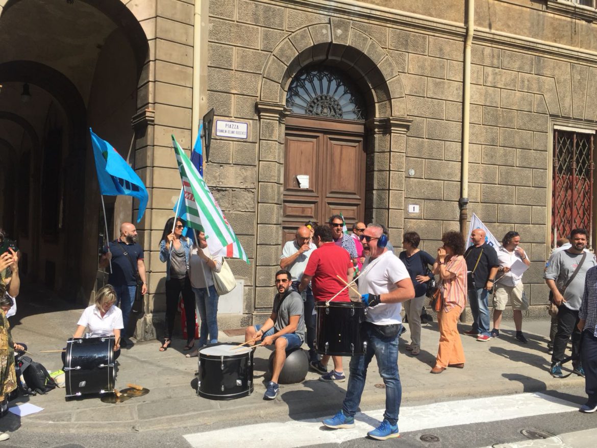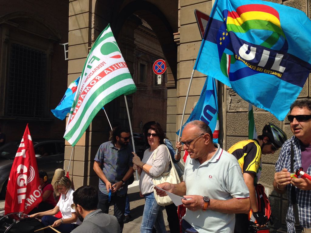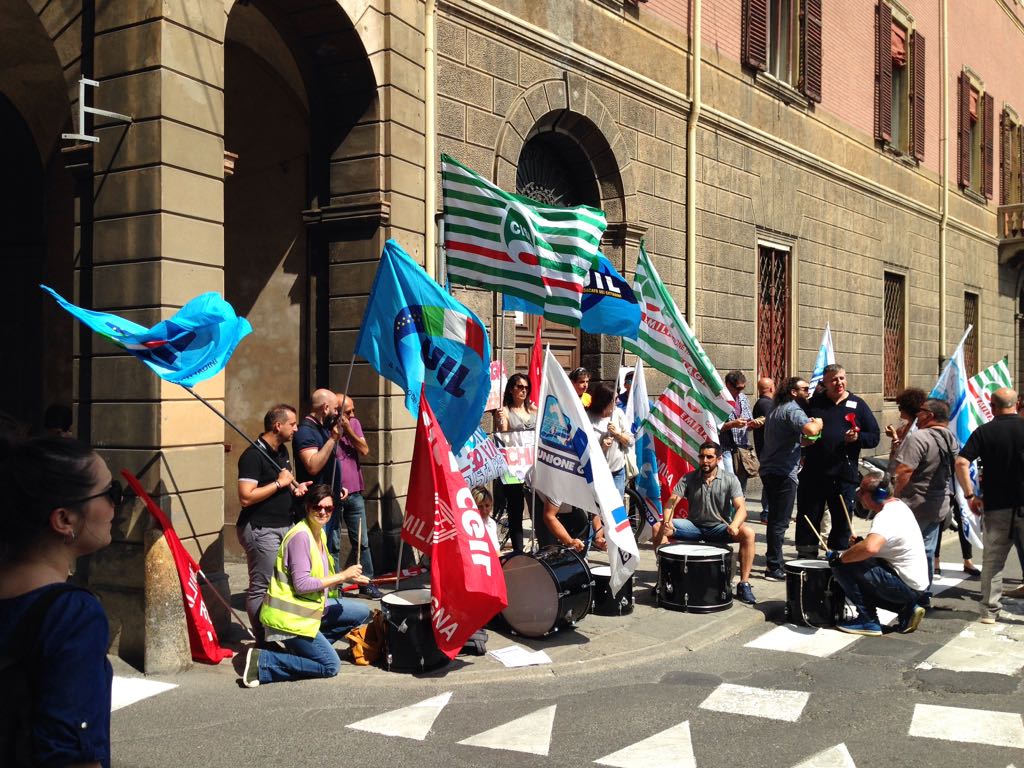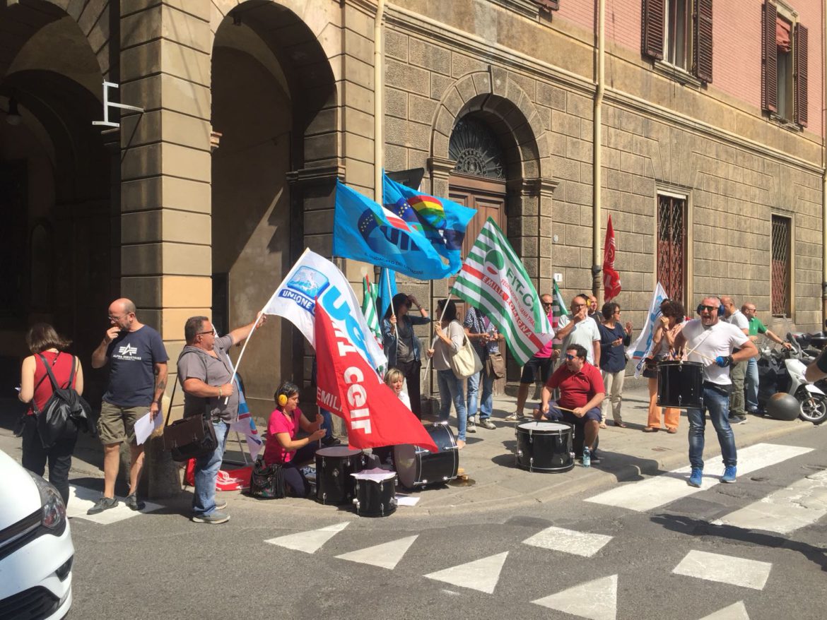 Uiltrasporti: il presidio dei lavoratori dell’handling di Gh Bologna dell’aeroporto Marconi sotto la sede della Prefettura a Bologna. In occasione del tavolo di crisi.