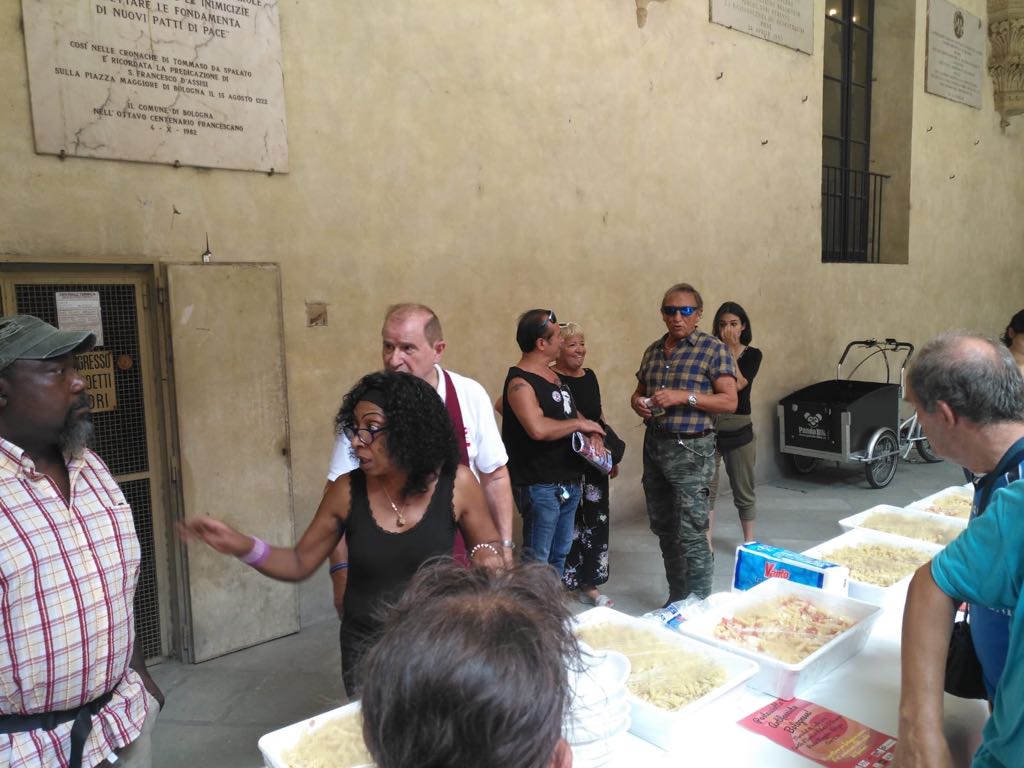 Pastasciutta antifascista nel cortile d’Onore di Palazzo d’Accursio di Bologna per ricordare e festeggiare la destituzione del duce come fece papà Cervi, quando, appresa la notizia in quel 25 luglio 1943, invitò tutti gli abitanti della sua Campegine, cui servì una pastasciutta. Uil con il segretario organizzativo, Roberto Rinaldi: presente!