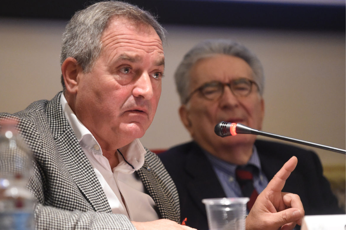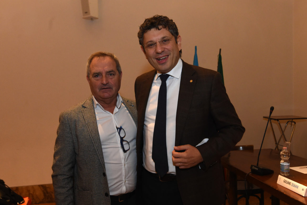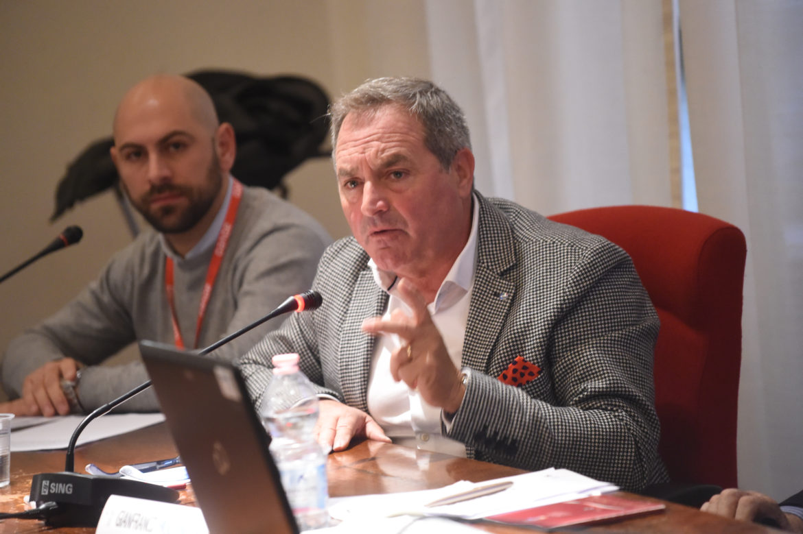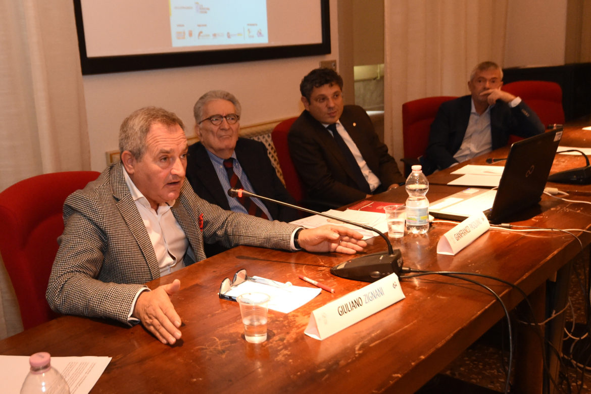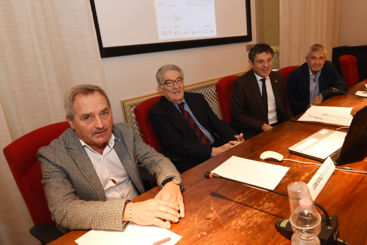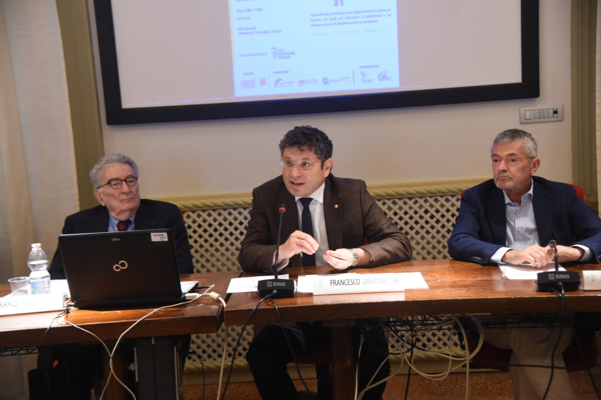 A dare il via ai lavori, a Palazzo Malvezzi, nel cuore di Bologna: Francesco Ubertini, rettore dell’Alma Mater Studiorum; Marco Monesi, consigliere delegato della Città Metropolitana di Bologna; Giuliano Zignani, segretario generale Uil Emilia Romagna e Bologna. (Foto: Gianni Schicchi)