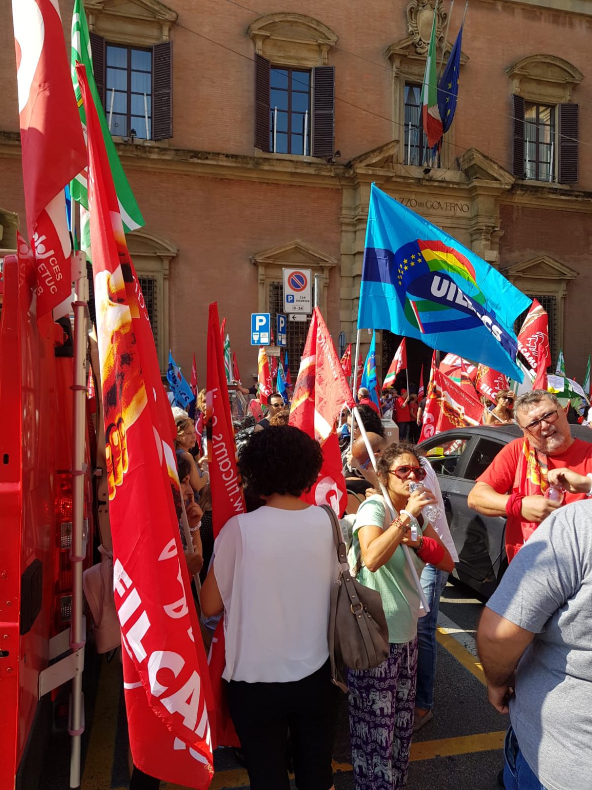 Uiltucs Emilia Romagna: presidio dei lavoratori della vigilanza privata sotto la prefettura a Bologna in occasione dello sciopero 1 e 2 agosto
