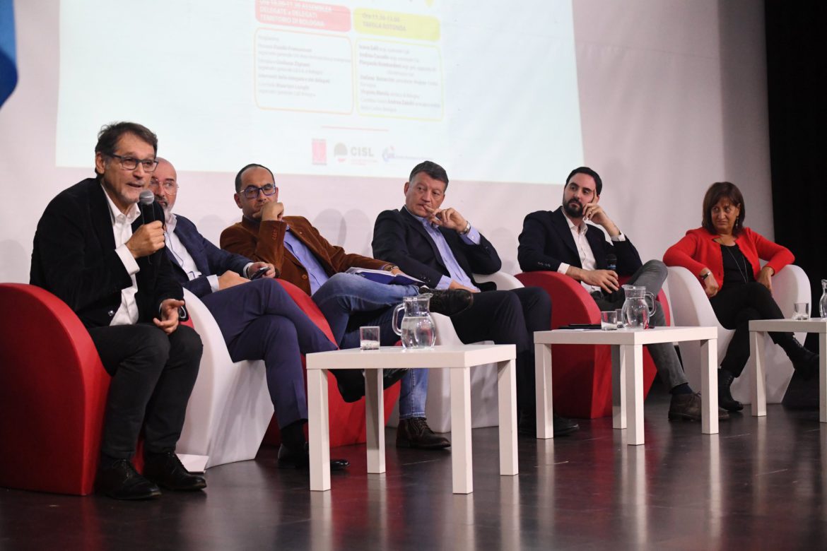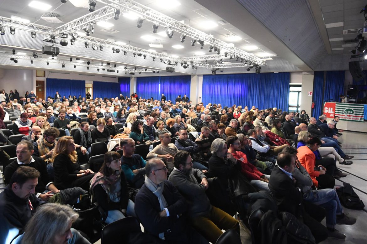 Platea gremita ad ascoltare il segretario generale aggiunto Uil, Pier Paolo Bombadieri a Bologna per l’attivo unitario. Sul palco per il confronto moderato da Andrea Zanchi del Carlino, il presidente della Regione Emilia Romagna, Stefano Bonaccini e il siandaco Virginio Merola. In prima fila, il segretario generale Uil ER, Giuliano Zignani.