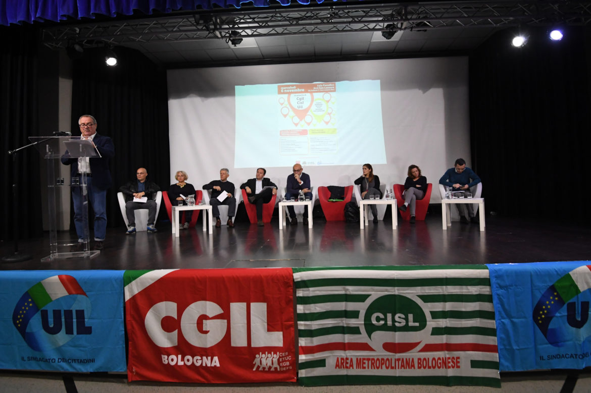 Giovani, equità sociale e fiscale, solidarietà, lavoro, buona occupazione, diritti dei lavoratori, pensioni, crisi aziendali, ambiente: è un discorso a tutto tondo quello pronunciato dal segretario generale Uil ER, Giuliano Zignani davanti ad una sala gremita per l‘attivo unitario Cgil-Cisl-Uil di Bologna.