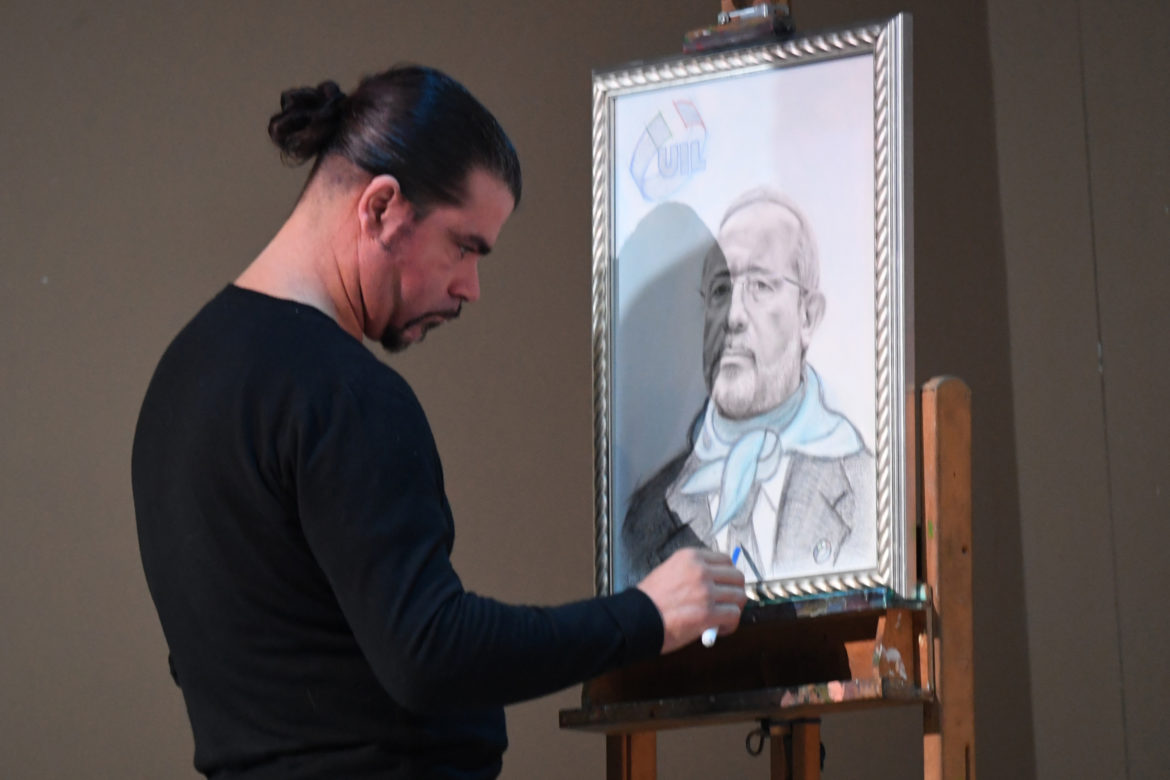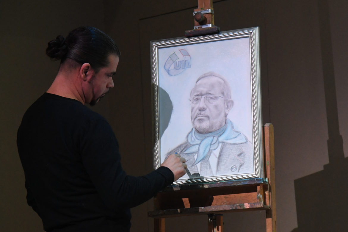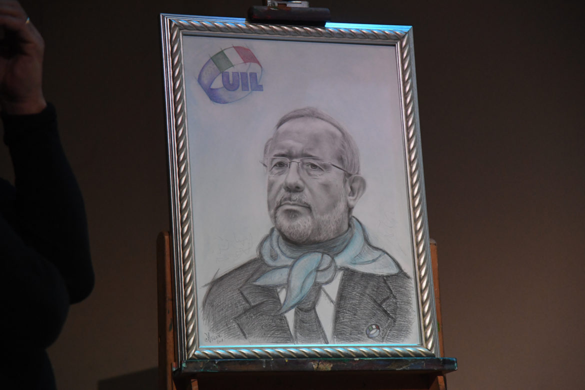 Il dipinto che raffigura in modo perfettamente verosimile il segretario generale Uil, Carmelo Barbagallo: è stata la sorpresa che la Uil ER ha voluto fargli in occasione della sua partecipazione all’incontro su Crisi Lavoro Sviluppo: quale futuro?
