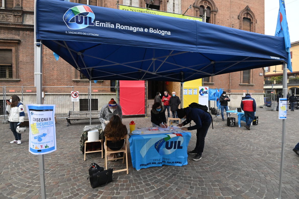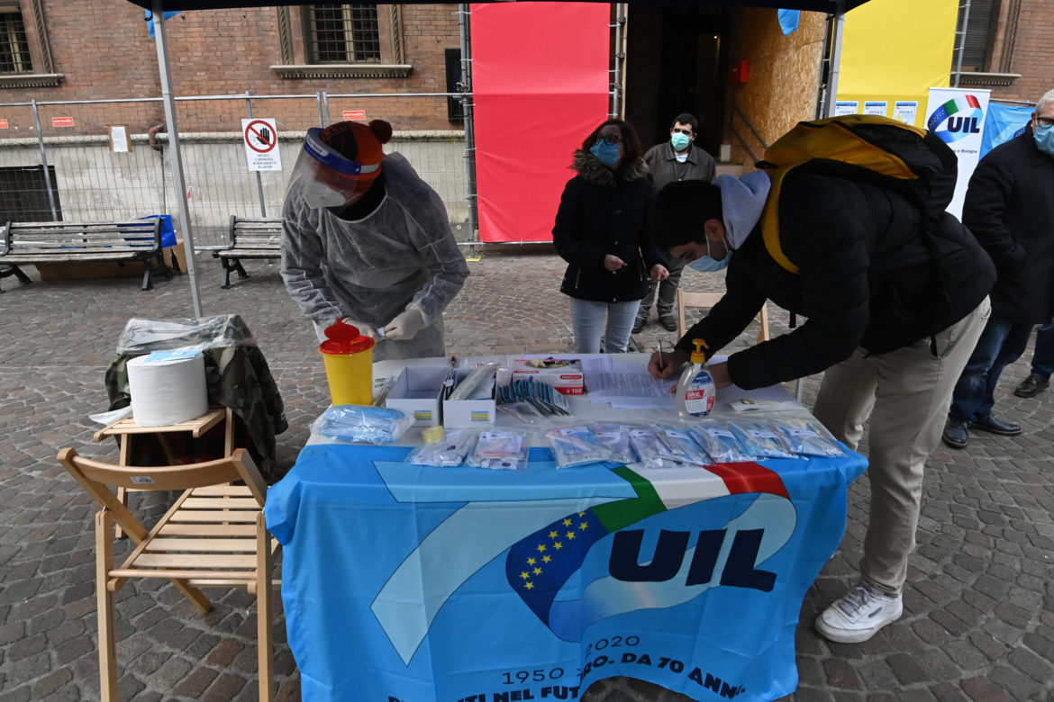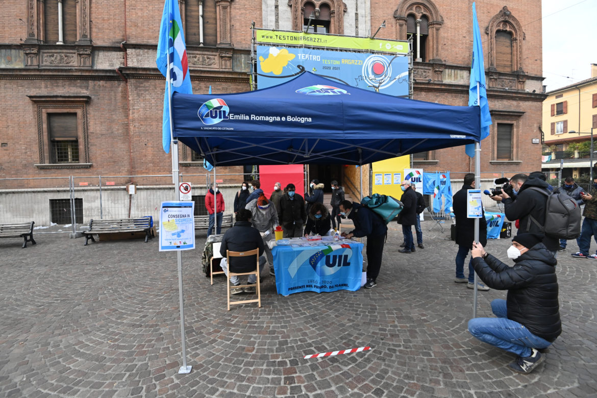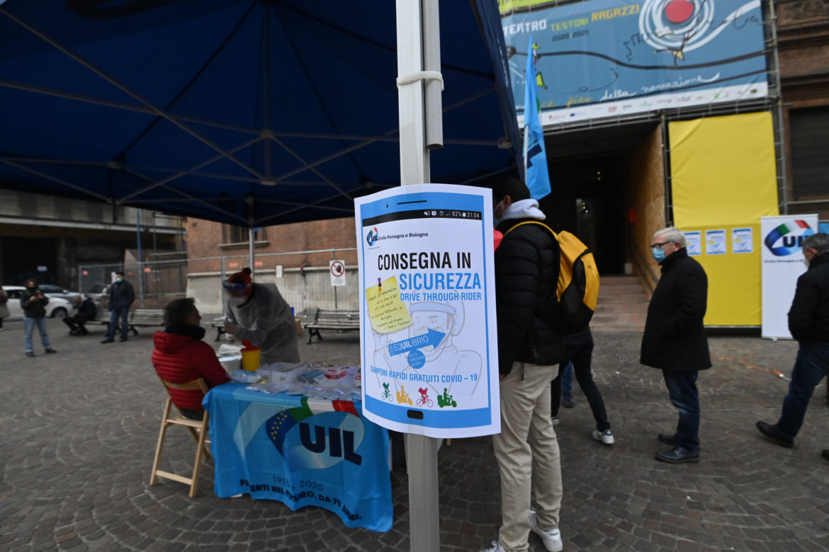 Con il drive through riservato ai rider che ha permesso loro di sottoporsi in modo gratuito al tampone rapido, è partita, a Bologna, la campagna Consegne sicure, voluta dal segretario generale UIL ER, Giuliano Zignani.