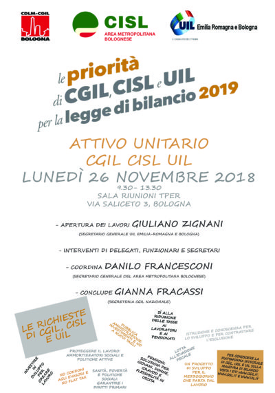 Attivo Cgil-Cisl-Uil: 26 novembre 2018 – Bologna